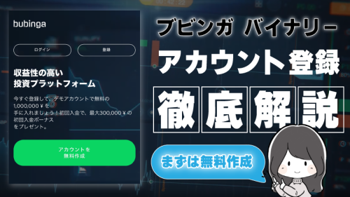 まだの方はブビンガバイナリー(Bubinga.com)の口座を開設して実際に使ってみましょう!口座開設だけなら無料なので安心して登録できます。